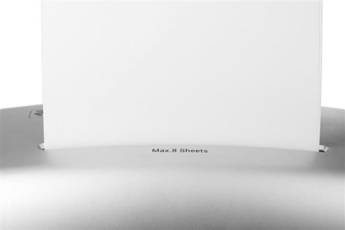 Знищувач документів та кредитних карток. Приймач розраховано на одночасне знищення до восьми листків А4. Для зберігання відходів передбачено зручний контейнер на 15 л. Управління реалізовано за допомогою трьох режимів – Авто, Реверс, а також постійна робота. Тип різки – перехресний, а розмір знищеного паперу – 4?35 мм.